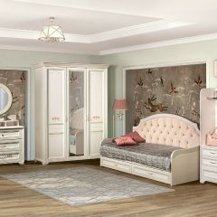 Детская «Флора» выполнена в классическом стиле и приятном светлом декоре «ясень белый». Изящный цветочный рисунок и серебристо-зеленая патина на светлом фоне придают мебели сдержанно-нарядный вид, благодаря чему комната будет выглядеть свежо и утонченно. Завершают внешний облик золотистые ручки с белой патиной в классическом стиле. Широкий модульный ряд позволяет создать комплекты под любой размер помещения и любой функционал. В этой детской есть оригинальные модули, которые интересным внешним видом добавят «изюминки» в интерьер.